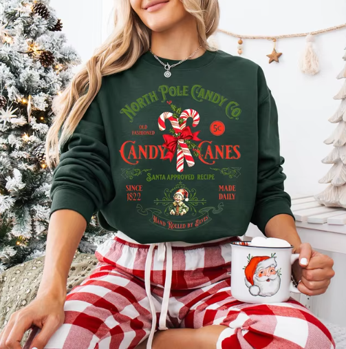 Lauren | Jersey festivo con estampado de bastones de caramelo, diseño de North Pole Candy Co. para mujer