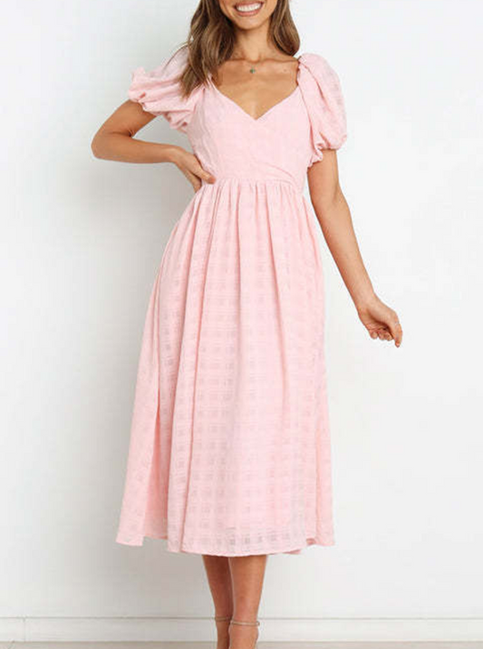 Vestidos monocromáticos casuales con cuello en V y falda pastel
