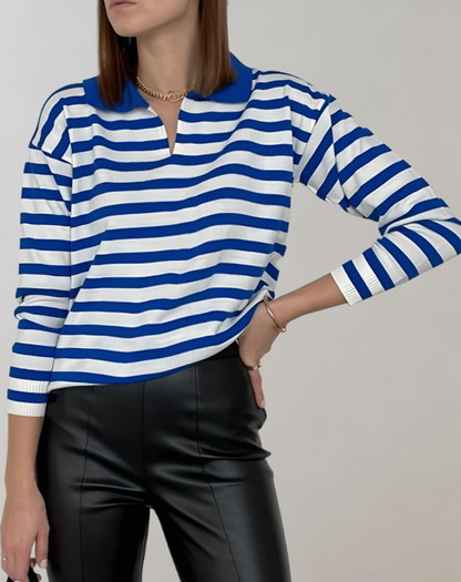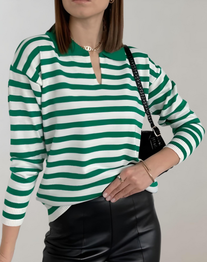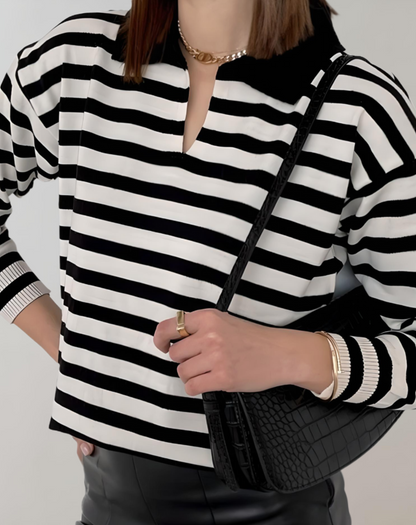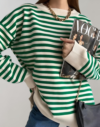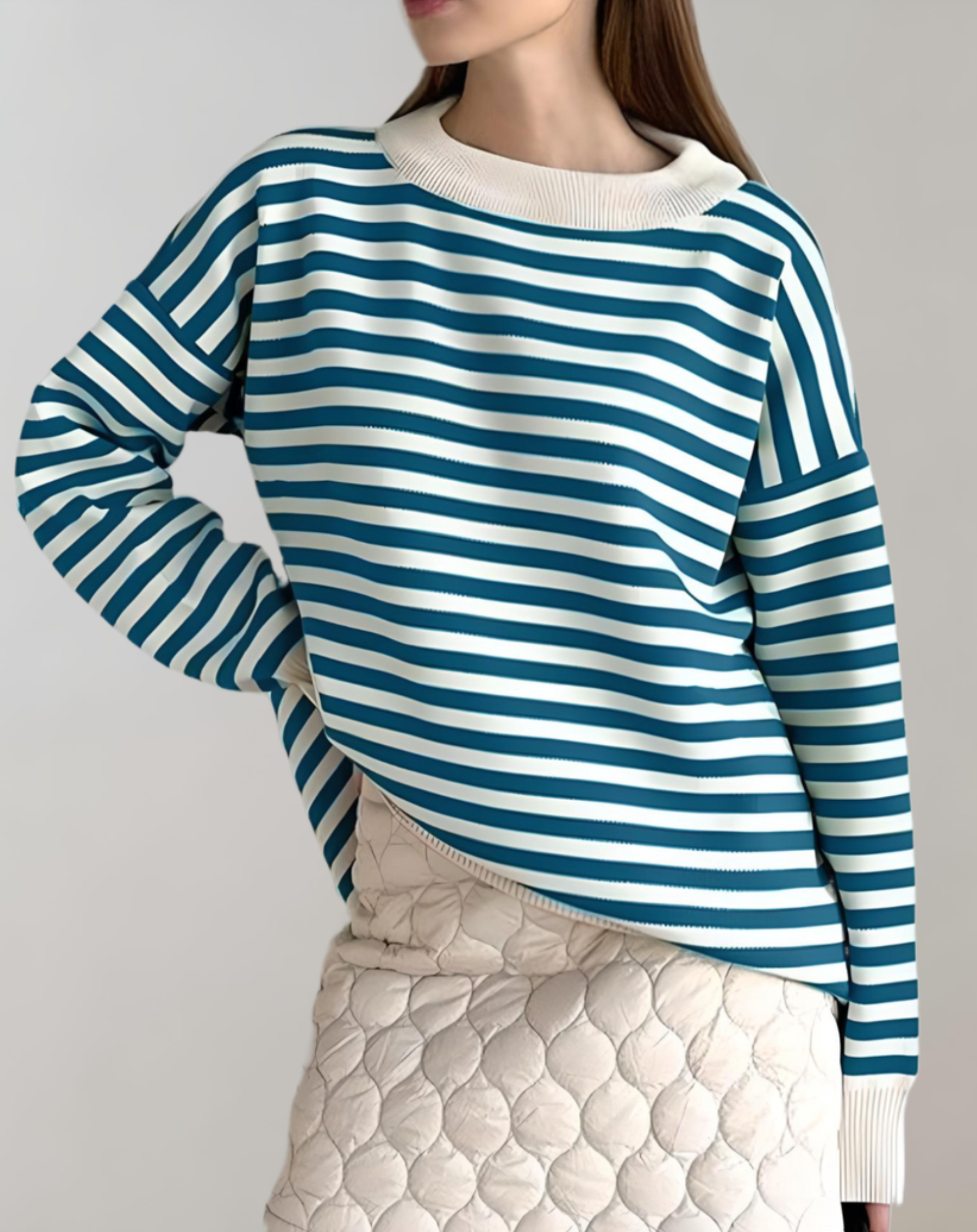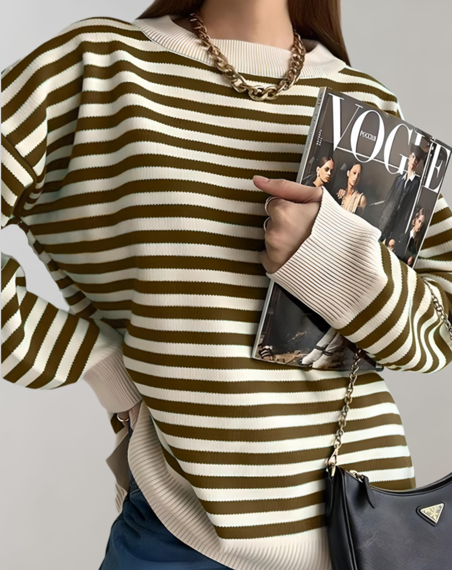 Arya - Jersey de cuello redondo a rayas de gran tamaño para mujer