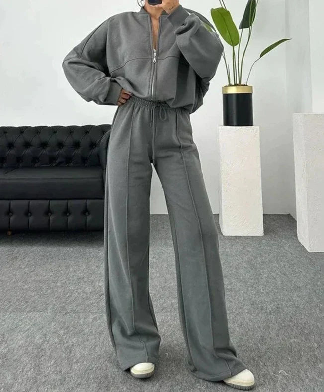 Elena - Conjunto de chándal gris de dos piezas para mujer