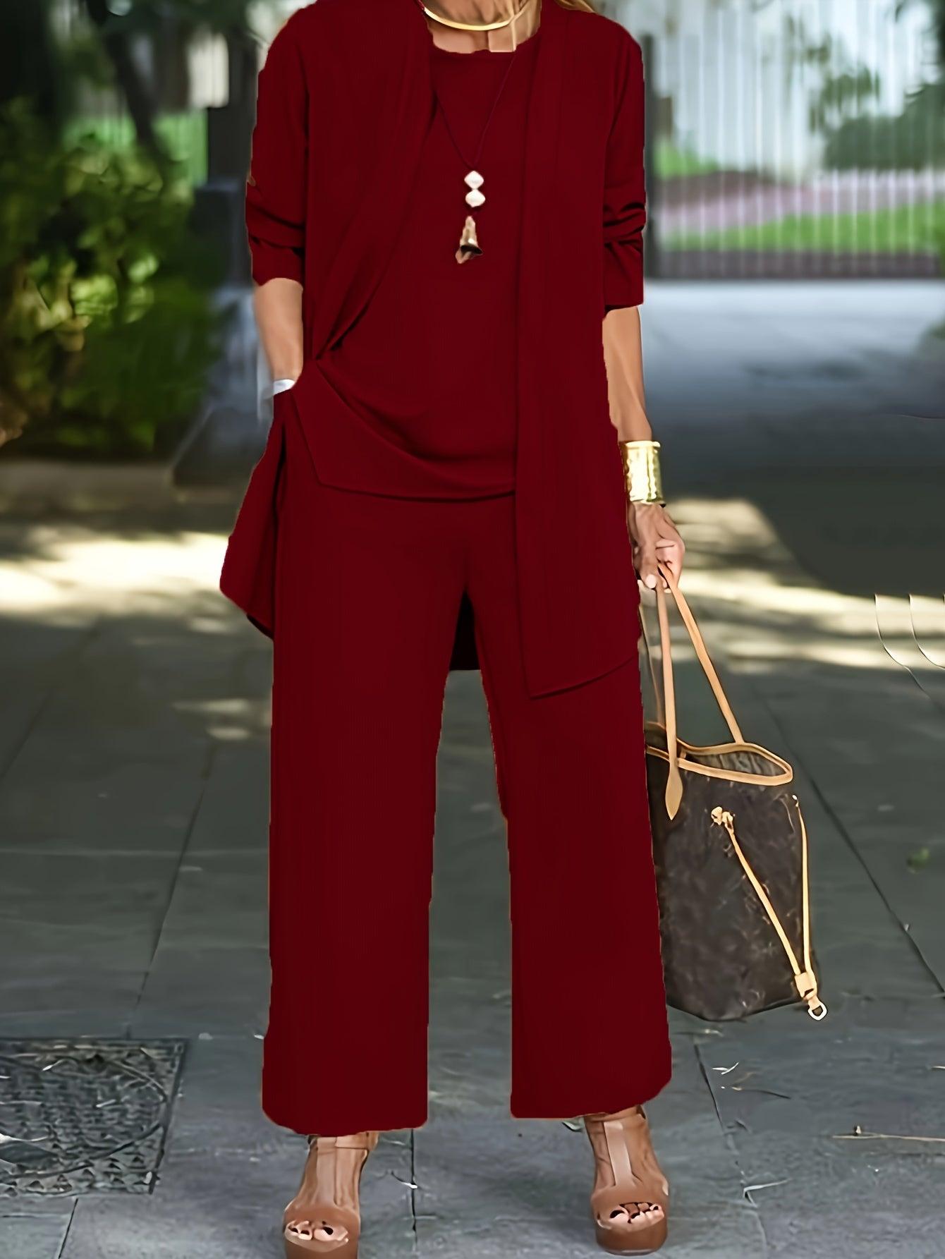Conjunto Khandra | Conjunto casual de tres piezas con cárdigan de manga larga y pantalón ancho