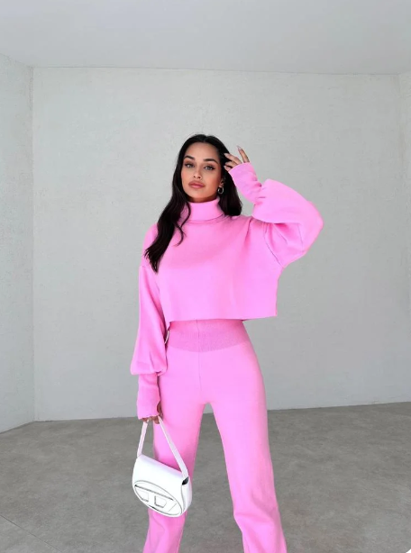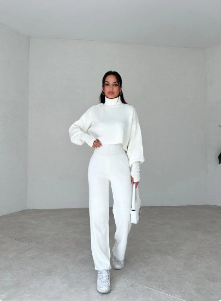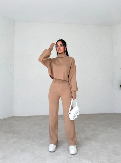 Conjunto de jersey y pantalón de cuello alto de punto para mujer Anneliese